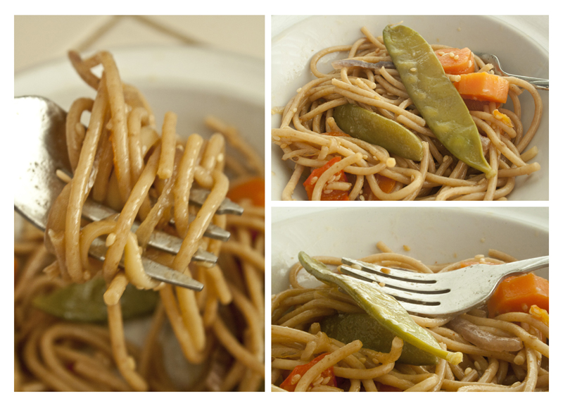 - 1 pound linguine, broken in half (or virtually any sort of noodle -- Soba or Rice noodles are perfect if you want to keep to the Asian theme!)